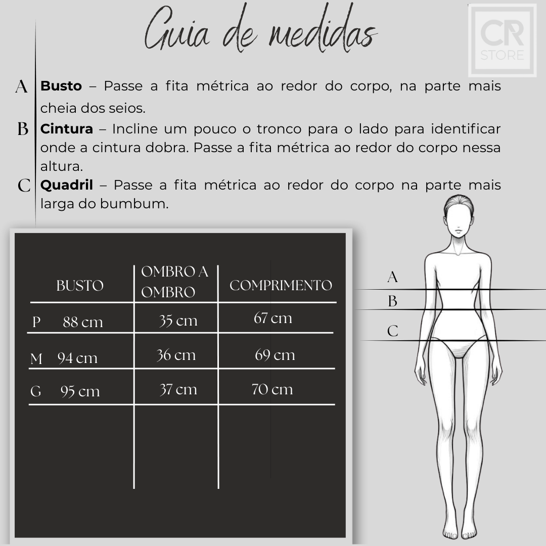 Disponível nos tamanhos P (36/38), M (38/40) e G (40/42)