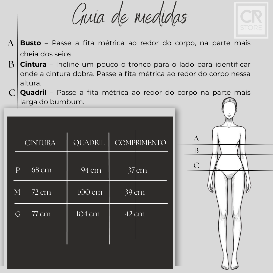 Guia de Tamanhos: - P: 36/38 - M: 40 - G: 42